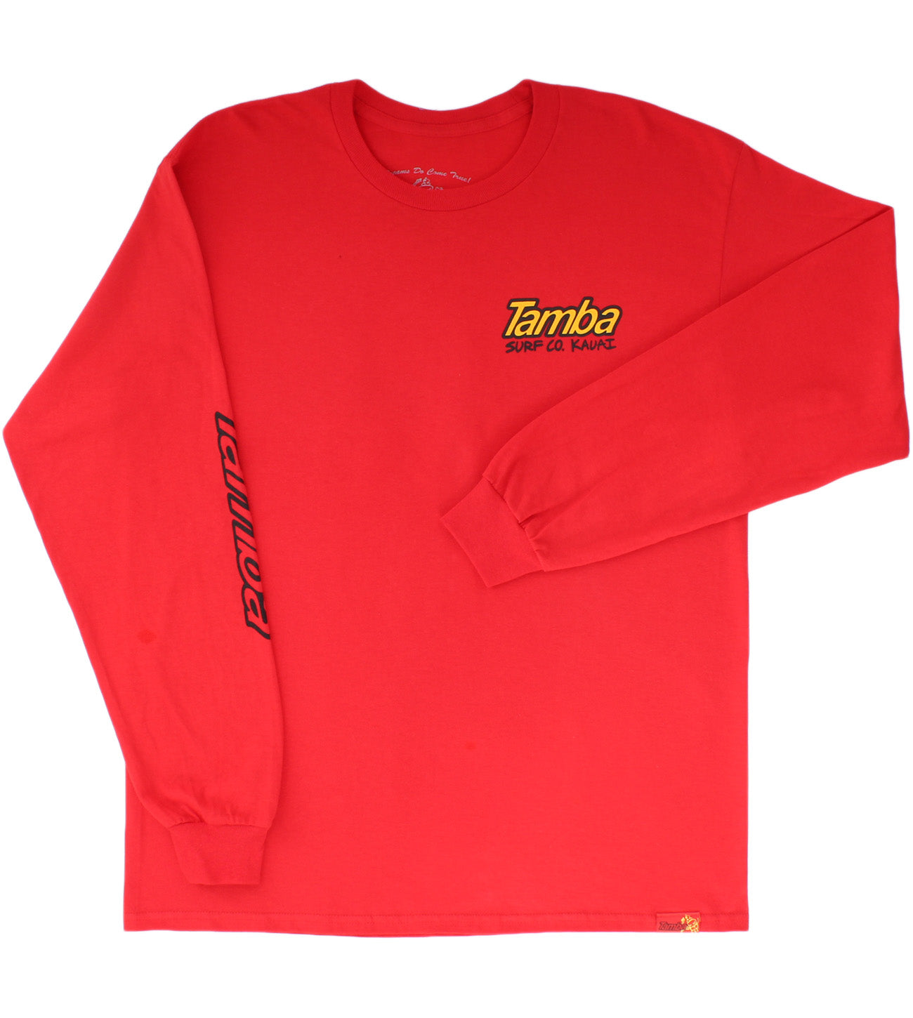 Tamba - Kaua'i Homegrown since 1997. Tamba is homegrown, maybe you are too? Doesn't really matter where you're from if Kaua'i is in your heart! Gildan Ultra cotton, larger print is on da back. Custom Tamba tag on hem. Logo on sleeve.