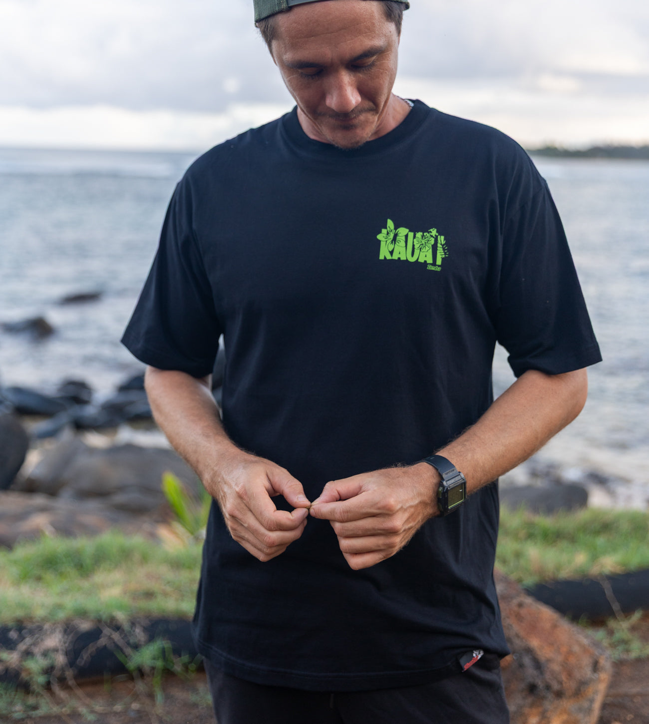 Care for the land, and the land will care for you. Cotton knit, a soft cotton, with some nice touches like the sewn-in collar band and the authentic Tamba Warrior tag sewn onto the waistline hem. Larger print is on da back.
