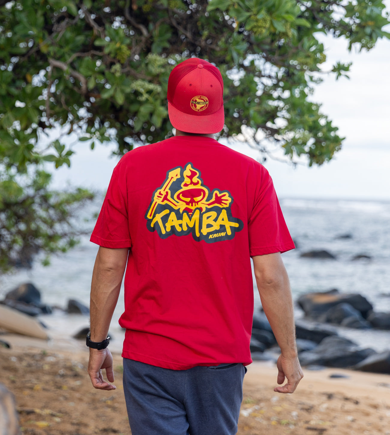Always rising. Cotton knit, a soft cotton, with some nice touches like the sewn-in collar band and the authentic Tamba Warrior tag sewn onto the waistline hem. Larger print is on da back,