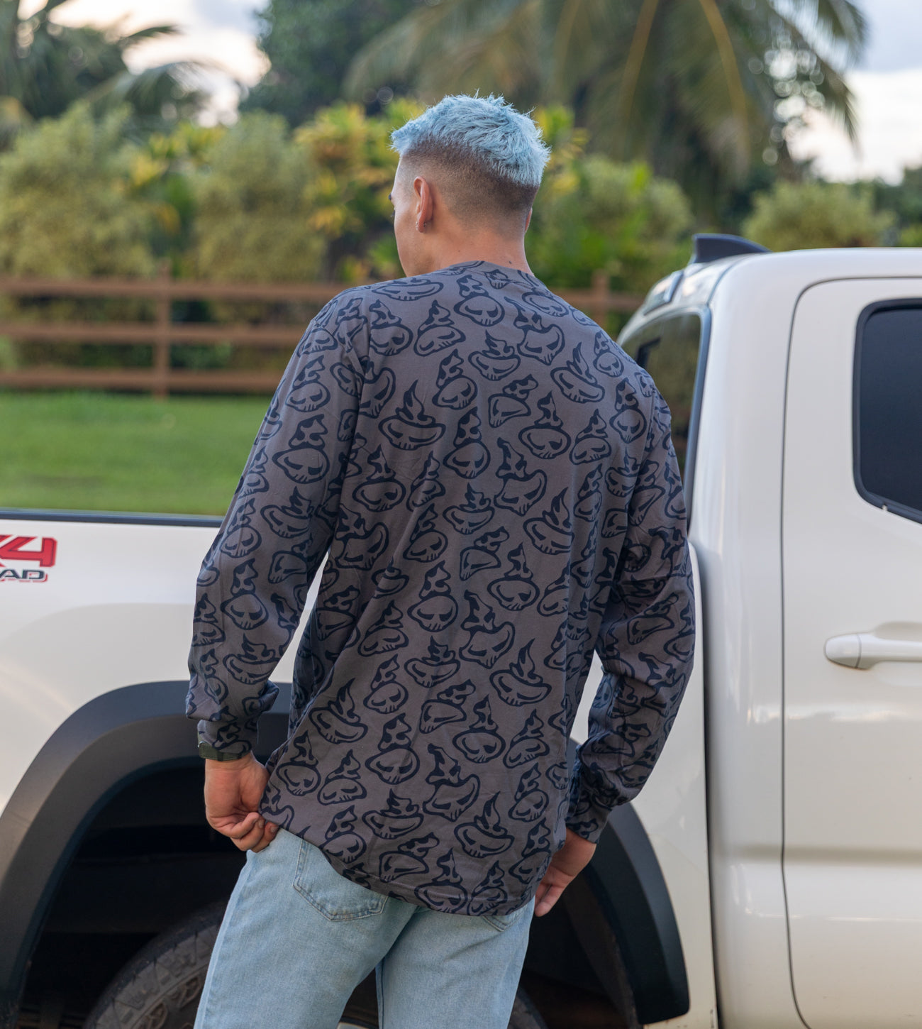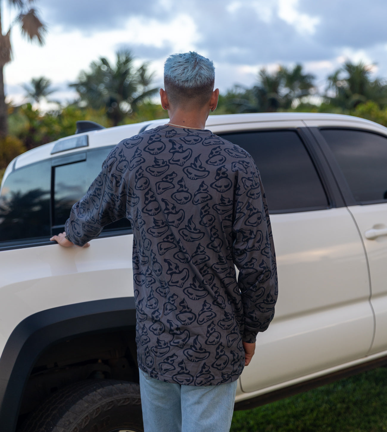 Water swirls, now you can too. Tamba Warrior 'Swirly' design. Cotton knit, a soft cotton with some nice touches like the sewn-in collar band and authentic Tamba Kaua'i tag on front. Full-wrap sublimation print.