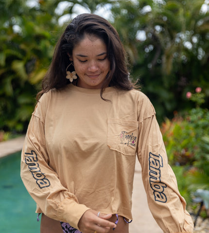 Hangin Out Women's Long Sleeve Cropped Shirt - Sand