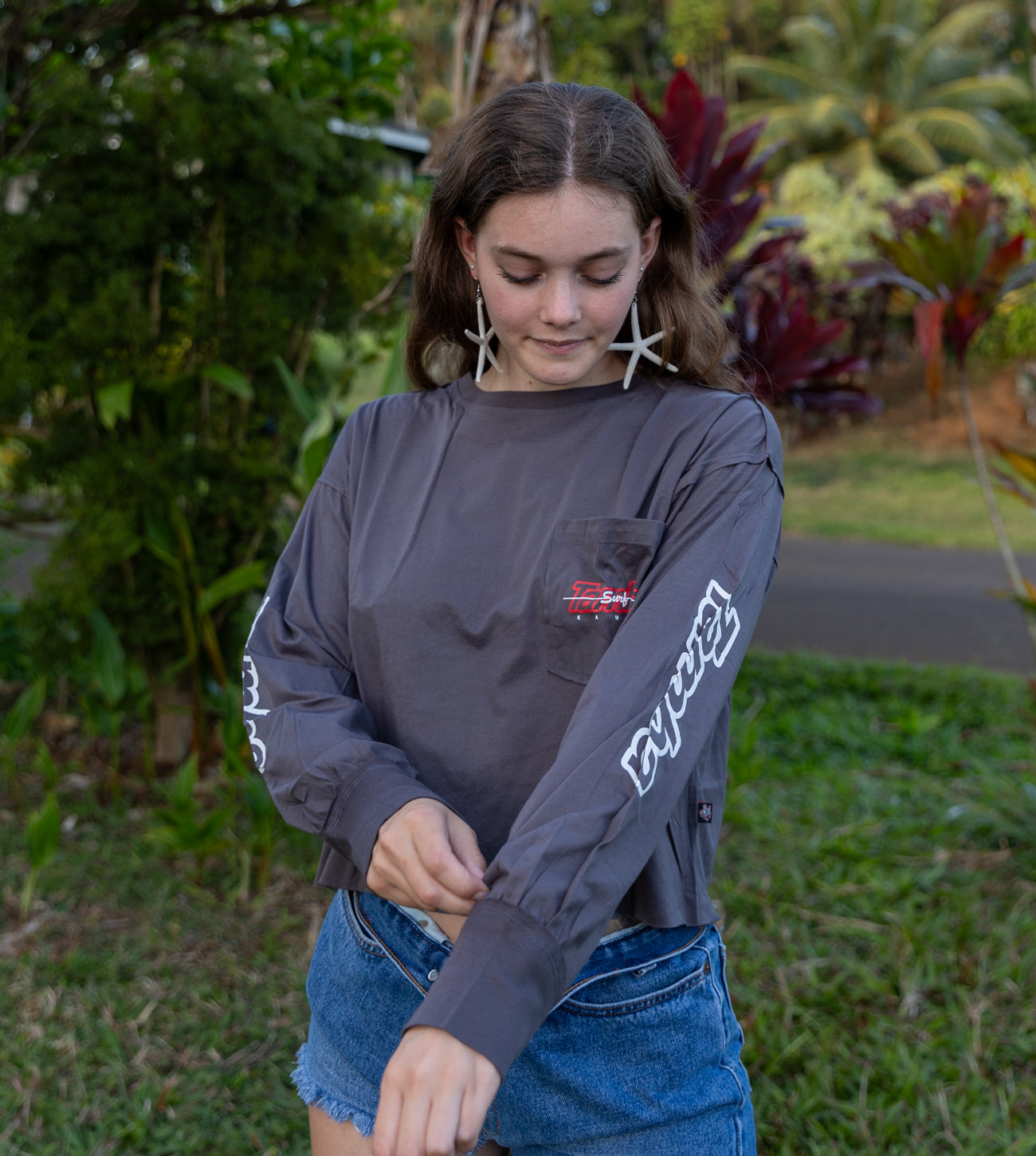 Surfline Womens Long Sleeve Crop Shirt - Dark Grey
