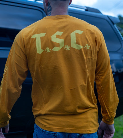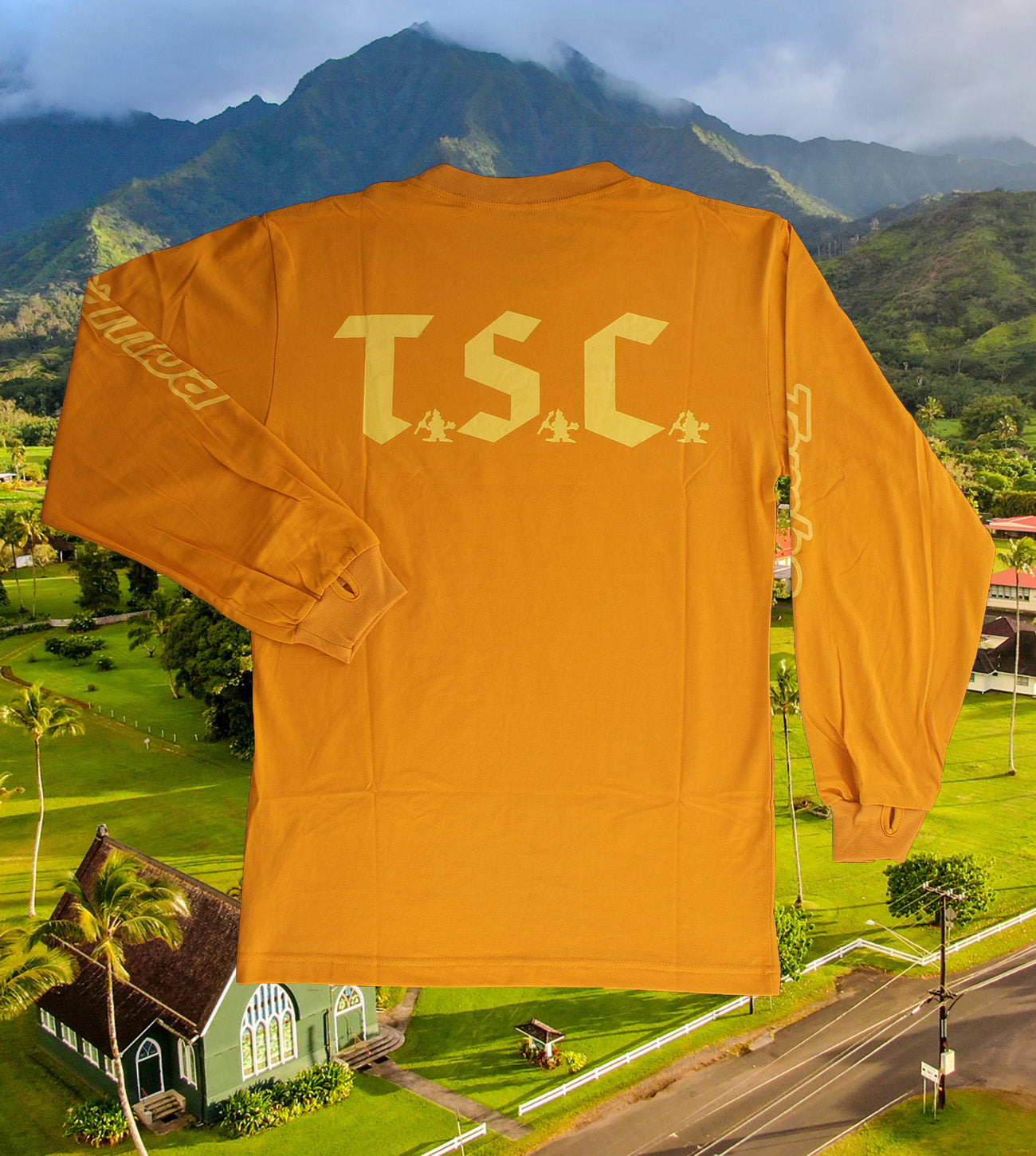 Party on the front, party on the back! Classic Tamba logo on front, TSC logo on back. Cotton knit, a soft cotton with some nice touches like the sewn-in collar band and authentic Tamba tag on hem. Larger print on back. Logo on both sleeves.