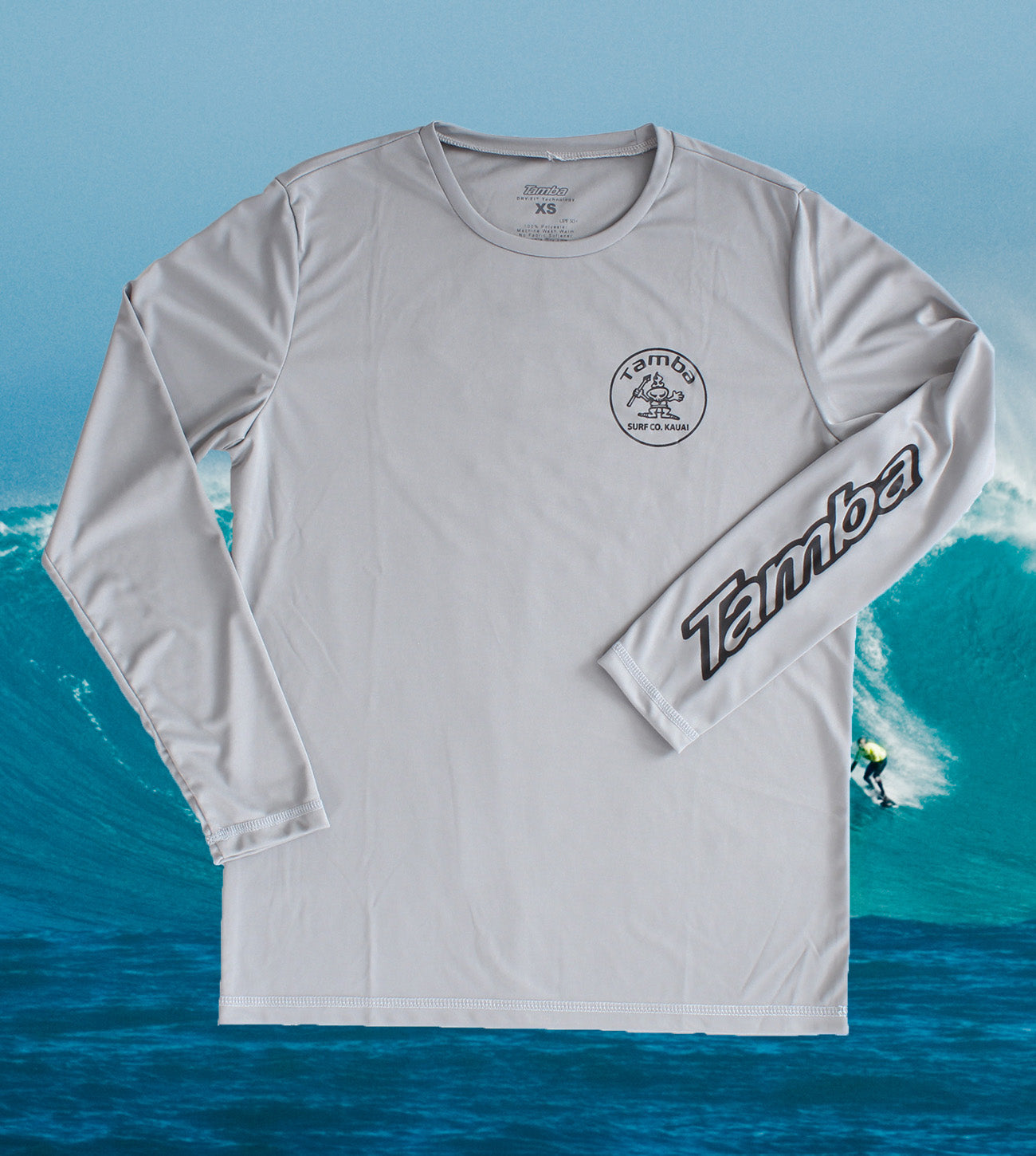 Styling UV shirt with the Tamba Surf Co Kaua'i 'Stamp' logo on back and breast.