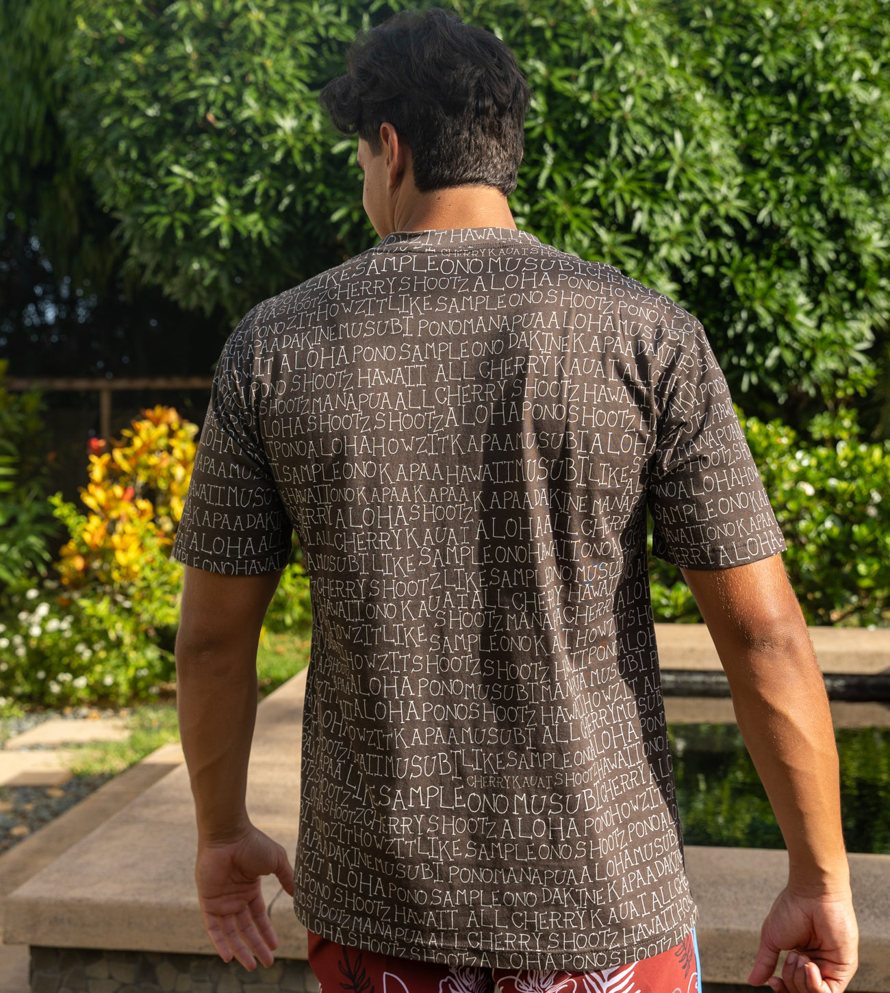 Takin' time to tell the tales of the day. Try slow, it's a way of life. Cotton knit, a soft cotton with some nice touches like the sewn-in collar band and authentic Tamba Kaua'i tag on hem. Full-wrap sublimation print.