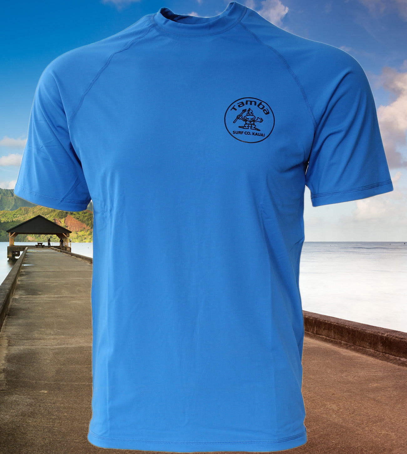 Styling Rash Guard with the Tamba Warrior and Surf Co Kaua'i 'Stamp' logo on back and breast.