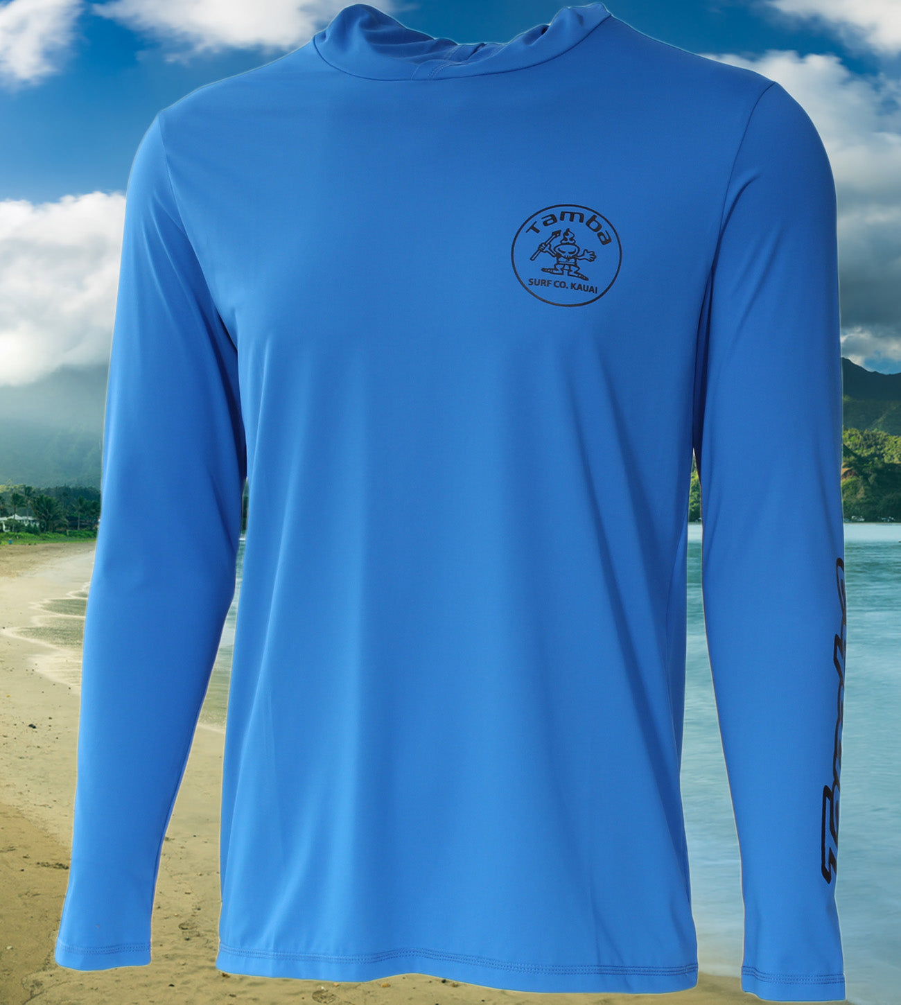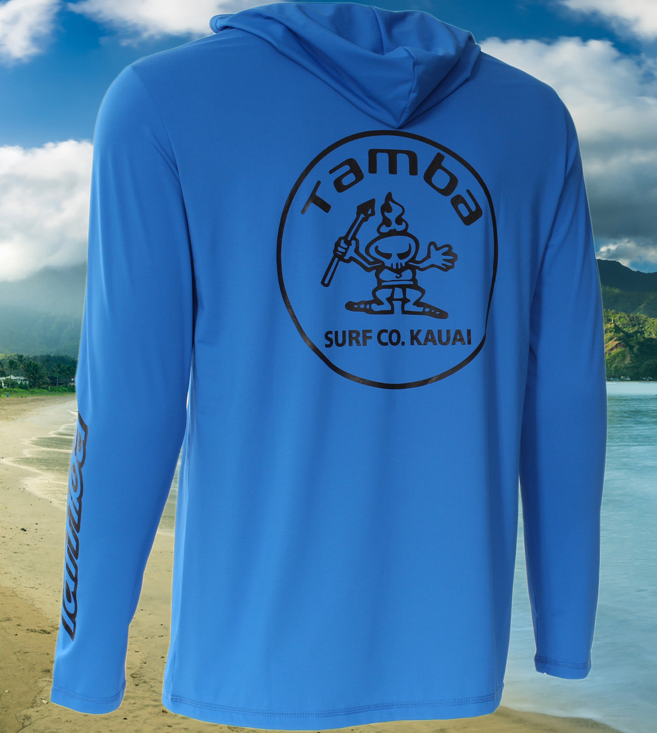 Styling UV shirt with the Tamba Warrior and Surf Co Kaua'i 'Stamp' logo on back and breast.