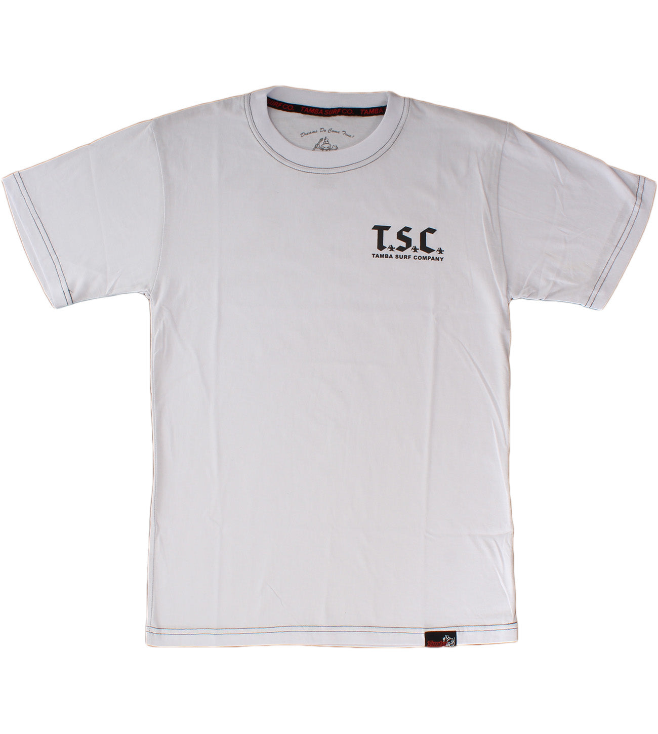 Party on the front, party on the back! Classic Tamba logo on front, TSC logo on back. Cotton knit, a soft cotton, with some nice touches like the sewn-in collar band and the authentic Tamba Warrior tag sewn onto the waistline hem. Larger print is on the back.