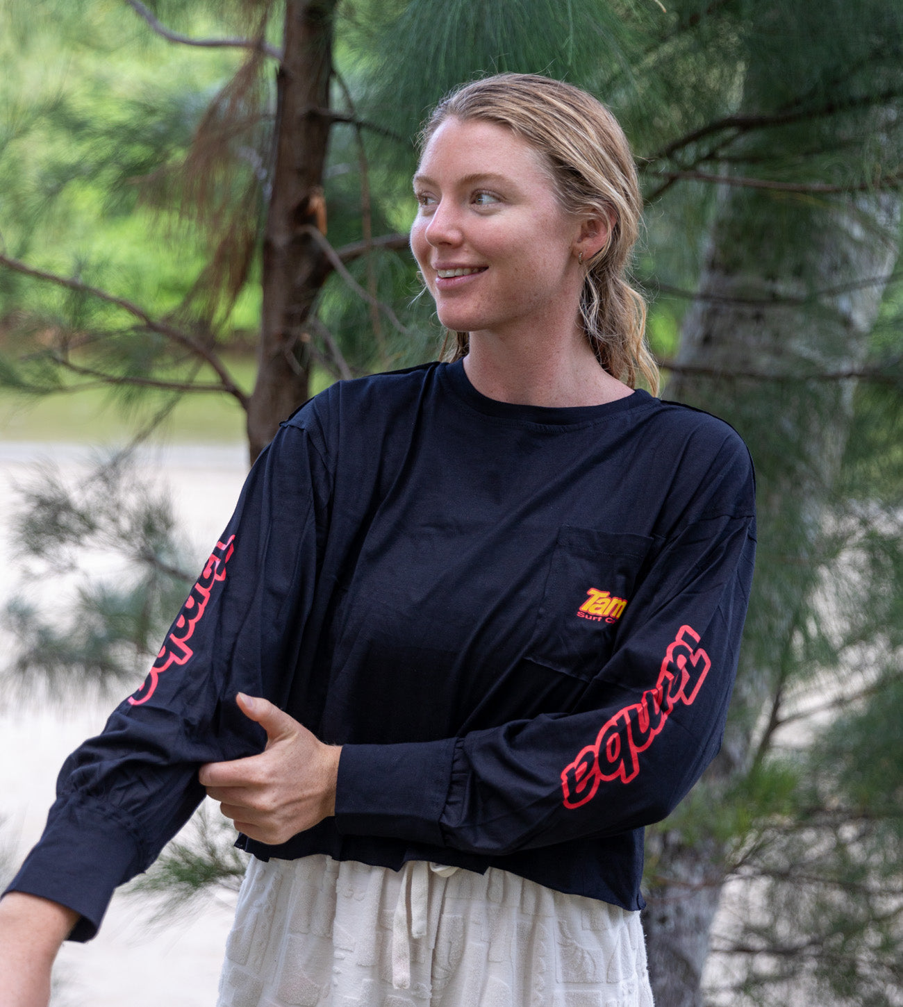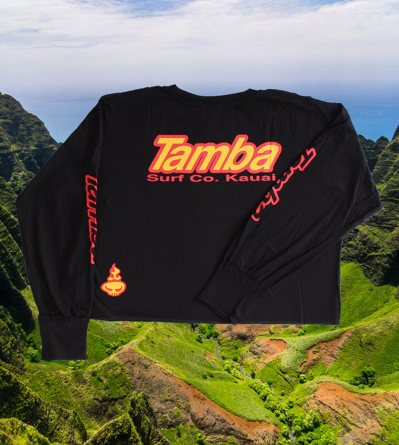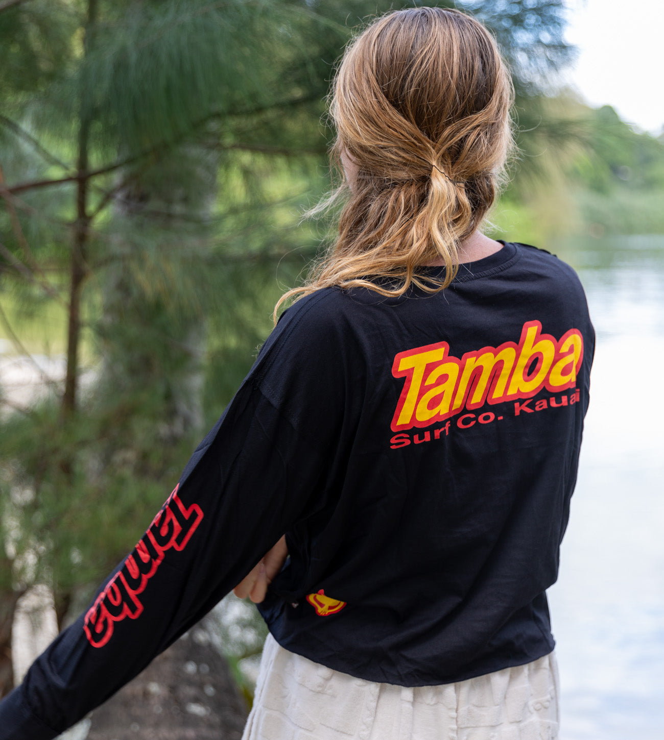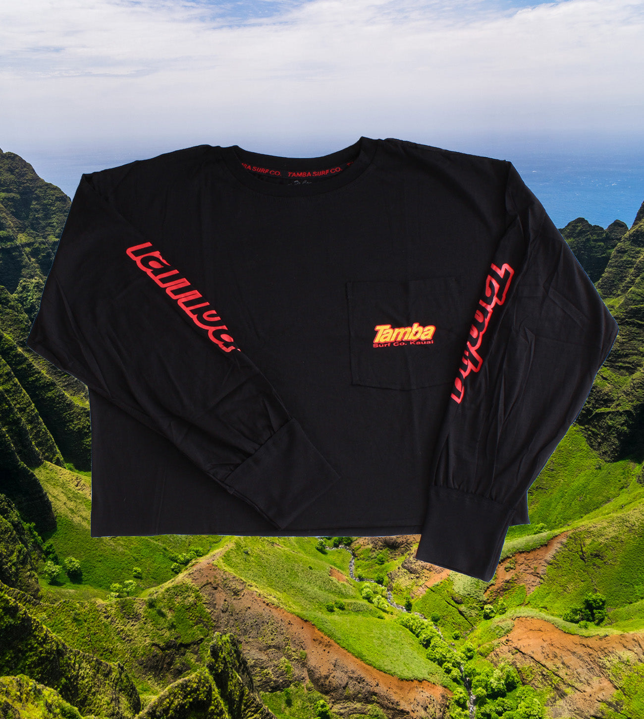 Surf Co Womens Pocket Cropped Long Sleeve Shirt - Black/Red/Yellow