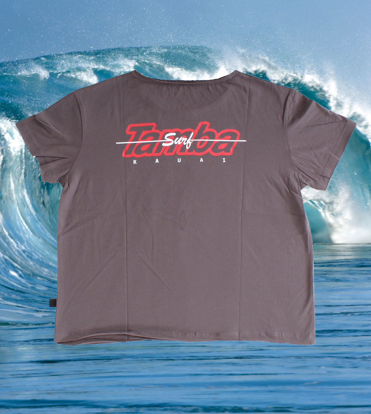 Sunrise, time for coffee and a look at the ocean. How's the surf? Let's go! Cotton knit, a soft cotton with some nice touches like the authentic Tamba tag on hem. Larger print on back