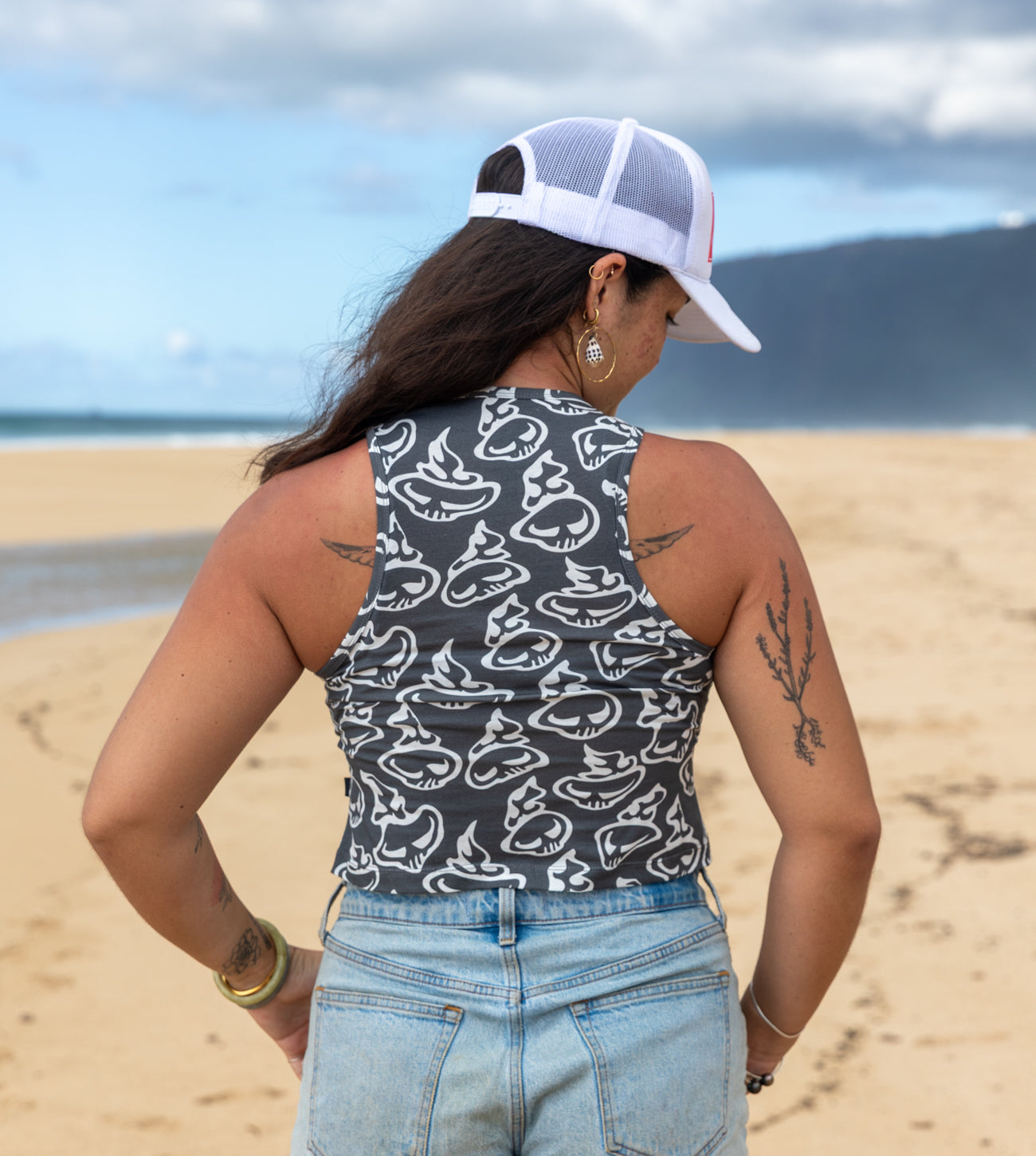 Water swirls, now you can too. Tamba Warrior 'Swirly' design. Cotton knit, a soft cotton with some nice touches like the warrior print on chest and authentic Tamba Kaua'i tag on side hem. Full-wrap sublimation print.