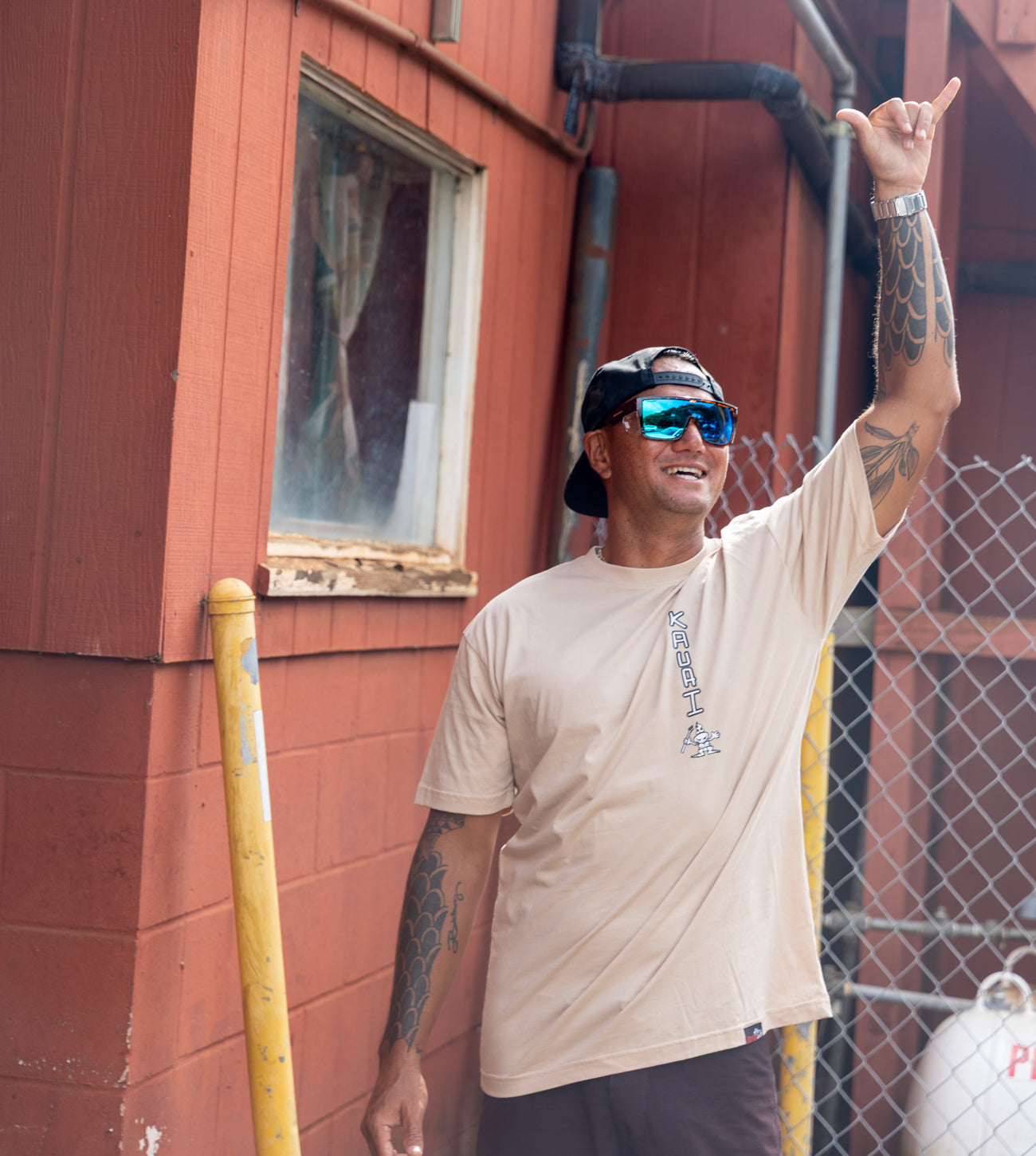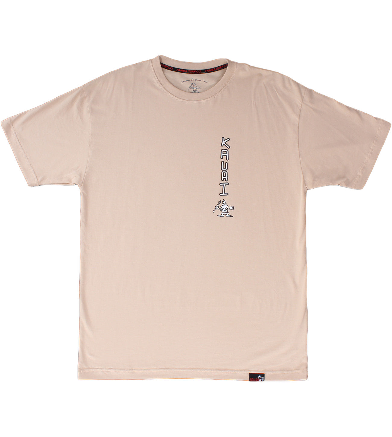Art imitates life, doesn't it? Cotton knit, a soft cotton, with some nice touches like the sewn-in collar band and authentic Tamba tag on hem. Larger art on back. Cool smaller front art too.