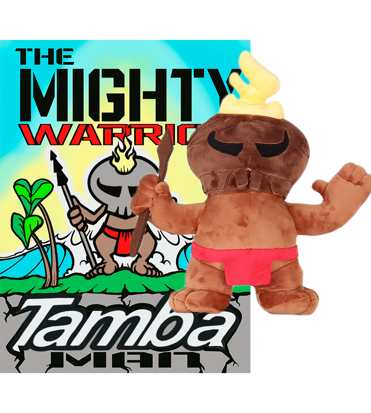 Plush Toy: Protector of the sea and sand, the Mighty Warrior Tamba Man. A soft plush toy for kids and grownups too. Take him to the beach, set him on the mantle, read him the Mighty Warrior Tamba Man book. Approx. 11 inches tall.