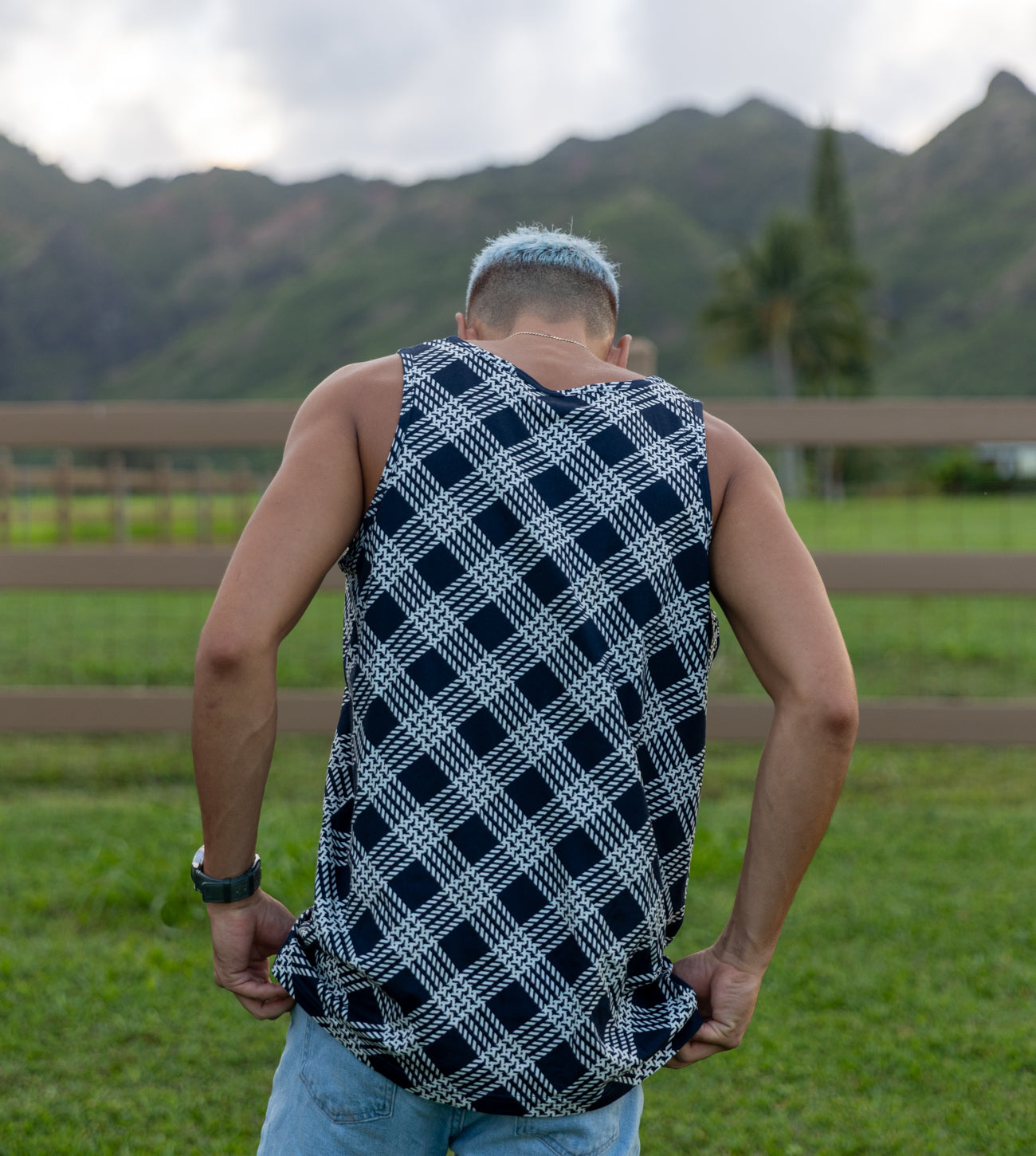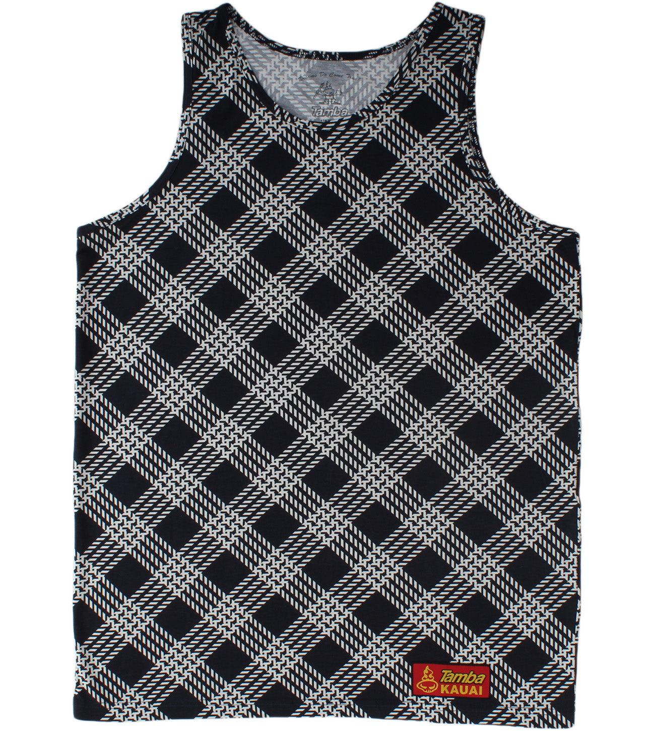 Palaka is Hawai'i's plaid! Tune in and let go. Cotton knit, a soft cotton with some nice touches like the authentic Tamba Kaua'i tag on front. Full-wrap sublimation print.
