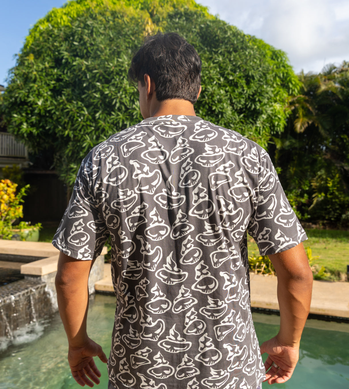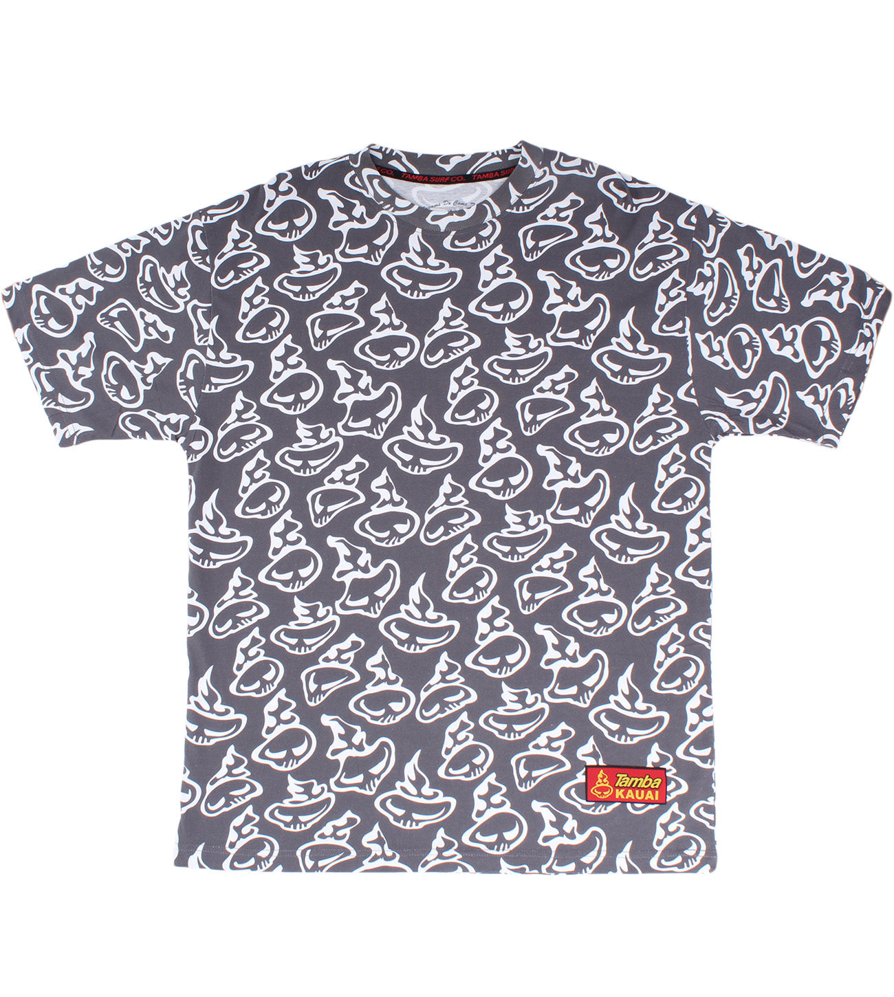 Water swirls, now you can too. Tamba Warrior 'Swirly' design. Cotton knit, a soft cotton with some nice touches like the sewn-in collar band and authentic Tamba Kaua'i tag on hem. Full-wrap sublimation print.